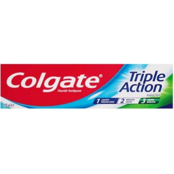 خمیر دندان Colgate Üçlü Etki (سهگانه اثر) محافظت قابل اعتماد، تمیز کردن عمیق و نفس تازه را در یک بطری ارائه میدهد. فرمول آزمایش شده آن برای مراقبت روزانه از دهان و دندان ایدهآل است.