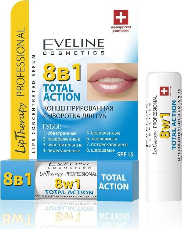 سرم لب غلیظ "توتال اکشن ۸ در ۱" به طور فشرده پوست ظریف لبها را تغذیه میکند، در عین حال آن را عمیقاً مرطوب کرده و از ترک خوردن آن جلوگیری میکند. این سرم لب، تعادل هیدرولیپیدی پوستهای حساس را بازیابی میکند و حتی لبهای بسیار خشک و ترک خورده را بازسازی میکند. علاوه بر این، این سرم به لطف فیلتر SPF 15 از پوست در برابر آفتاب و همچنین اثرات تهاجمی عوامل خارجی محافظت میکند و لبها را بسیار نرم و لطیف میسازد. فرمول سرم لب همچنین با روغن آرگان و عصارههای وانیل و آووکادو غنی شده است. آنها سنتز کلاژن را بهبود میبخشند و پس از آن پوست سفت و ارتجاعی میشود.